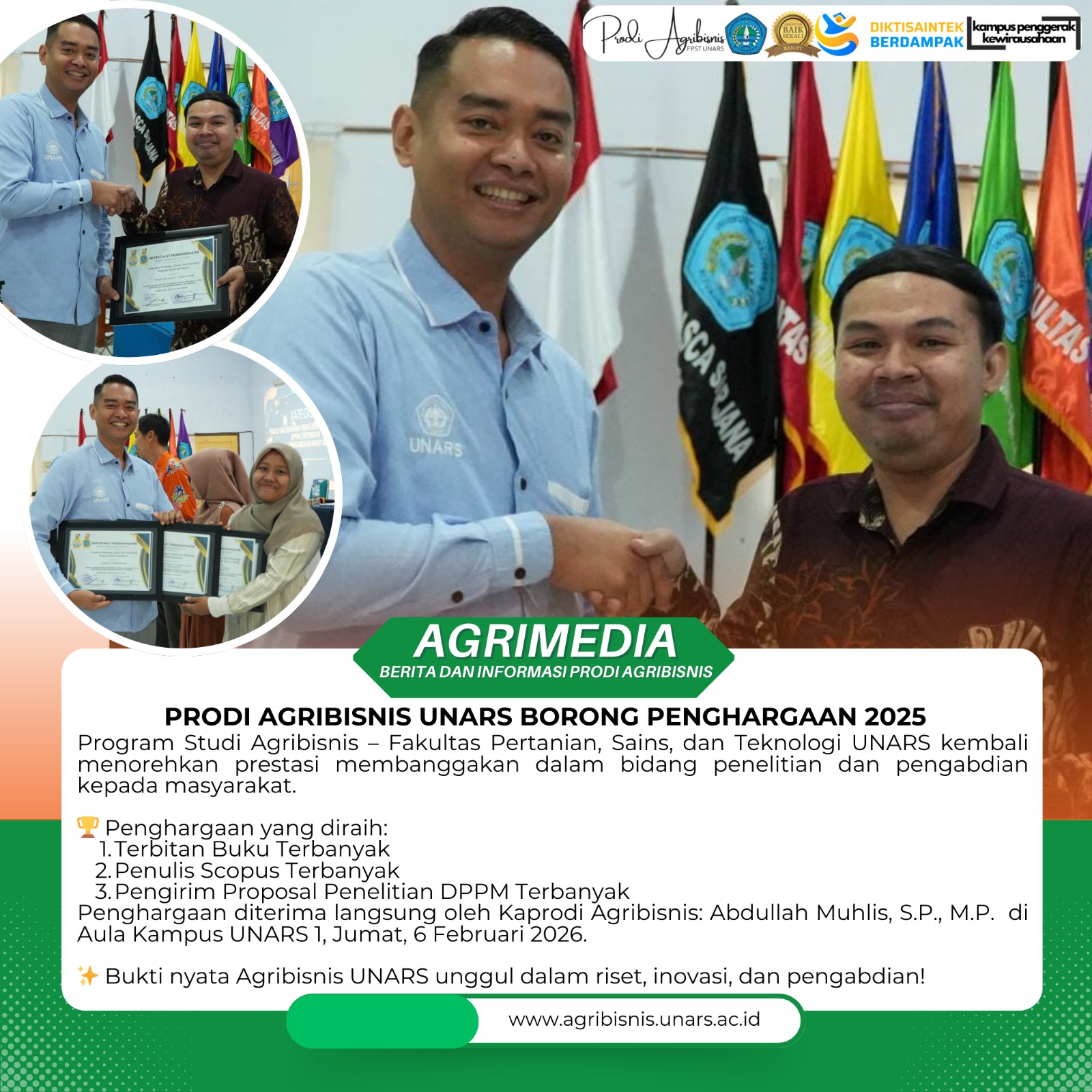PS Agribisnis merupakan salah satu program studi yang ada di Fakultas Pertanian, Sains dan Teknologi (FPST) UNARS. PS Agribisnis disiapkan untuk menghasilkan sarjana yang memiliki kompetensi di bidang Agribisnis dalam segala bidang keilmuan pertanian (pertanian, peternakan dan perikanan). Selain itu sarjana Pertanian dirancang untuk mampu menangkap dan memanfaatkan peluang berwirausaha dalam industri usaha hasil pertanian, hal ini sesuai dengan visi dan misi UNARS sebagai pelopor kewirausahaan.